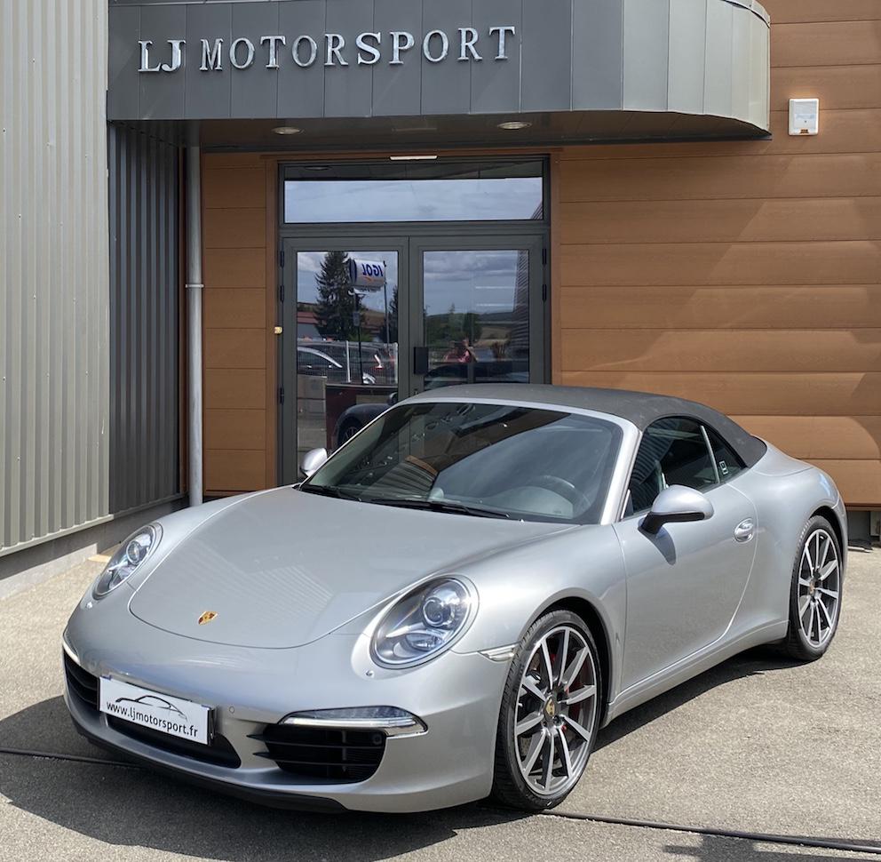 LJ Motorsport, votre spécialiste Porsche en région Lyonnaise vous propose à la vente ce magnifique exemplaire de Porsche 911 991 Carrera S Cabriolet 400 ch boite PDK disponible dans notre shoowroom (30 Kms au sud de Lyon).